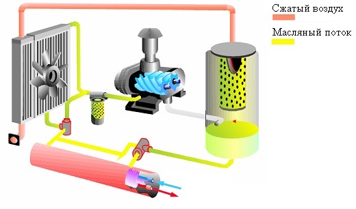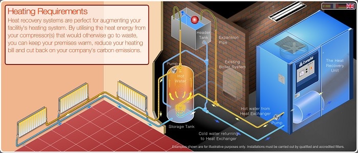 В воздушном винтовом маслозаполненном компрессоре в процессе сжатия основная часть тепловой энергии передается маслу. В компрессоре, не оборудованном системой утилизации тепла охлаждение масла осуществляется окружающим воздухом в масляном теплообменнике. Таким образом вся тепловая энергия компрессора отводится в окружающую среду, не выполняя ни какого полезного действия.
